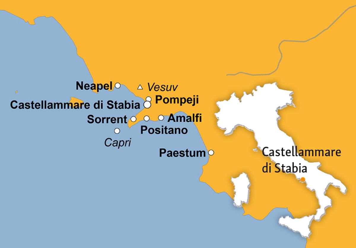 Heute steht Pompeji auf Ihrem Programm, die in der Antike beim großen Ausbruch des Vesuv verschüttete Stadt. Bei der Freilegung sind unschätzbare Zeugnisse aus der Antike entdeckt worden. Pompeji bietet mit seinen gewaltigen Ausmaßen das beste Beispiel einer Stadt des Altertums. Das Meer von Asche und Lava, das die Stadt todbringend bedeckte, hatte eine konservierende Wirkung, so dass nach ihrer Freilegung fast alles unversehrt für die Nachwelt erhalten blieb. Während der Besichtigung können Sie das Forum und die Tempel des Zeus und Apollo, die antiken Läden und das Freudenhaus – reich an erotischen Malereien – sehen.