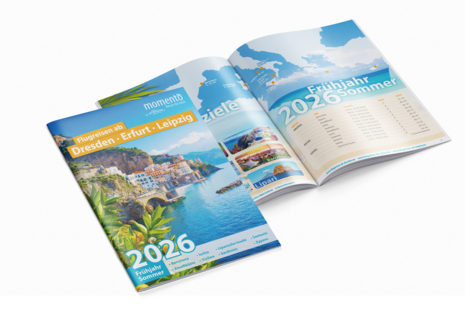 Wir senden Ihnen den Katalog gern kostenlos nach Hause. Lernen Sie unsere Ziele ab Dresden, Erfurt & Leipzig kennen, blättern Sie durch unsere sorgfältige Hotelauswahl, entdecken Sie spannende Ausflugspakete und planen Sie Ihre nächste Traumreise.